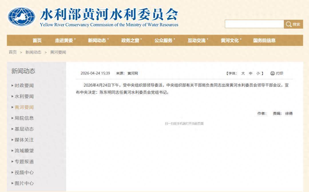 2026年4月24日下午,受中央组织部领导委派,中央组织部有关干部局负责同志出席黄河水利委员会领导干部会议福建股票配资公司,宣布中央决定:陈东明同志任黄河水利委员会党组书记。